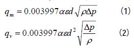 式中:mq為質(zhì)量流量,kg/h;vq為工況條件下的體積流量,m3/h ;為流量系數(shù);為流束膨脹系數(shù);p為差壓,Pa;為工況條件下被測流體的密度,kg/m3;d為工況條件下的節(jié)流開孔直徑,mm。