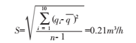 選用渦街流量計在DN50管線上重復(fù)10次,測量結(jié)果分別為:184.23、184.05、183.96、183.87、182.78、183.78、183.60、183.69、183.60、183.05(單位Nm³/h),計算得到: