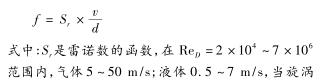 發(fā)生體的形狀和尺寸一定時,S r 可視為常數(shù),渦街頻率與體積流量成比例關(guān)系,不受流體物理性質(zhì)和組份變化的影響。