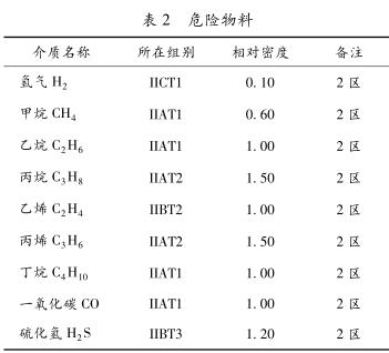 操作溫度為48.9℃,沒有特殊性,選擇普通的渦街流量計(jì)即可;根據(jù)現(xiàn)場(chǎng)情況,流量計(jì)為露天安裝,防護(hù)等級(jí)選擇IP65即可;根據(jù)《爆炸危險(xiǎn)環(huán)境電力裝置設(shè)計(jì)規(guī)范》GB50058-2014,本裝置中各介質(zhì)所在組別屬于危險(xiǎn)物料,見表2。因此儀表的防爆標(biāo)志選擇ExiaⅡCT4Gb即能滿足要求。根據(jù)項(xiàng)目統(tǒng)一要求輸出信號(hào)選擇為4~20mA+HART。
