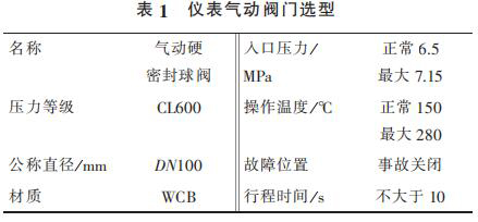 1) 飽和蒸汽流量計(jì)出口管線總閥泄漏無法在線處理,導(dǎo)致氣化爐停車。在入氣化爐根部增加 2 臺儀表氣動閥門,要求每月進(jìn)行 2 次開、關(guān),防止閥門出現(xiàn)卡塞現(xiàn)象。 新增 2 臺儀表氣動閥門相關(guān)參數(shù)見表 1。