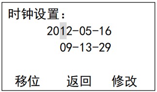 設(shè)置界面 13: 時鐘設(shè)置,校準當前運行的日期和時間,此參數(shù)出廠時已校準,設(shè)置影響記錄的保存和查詢,在運行前務必確認是正確的當前日期,如錯誤將造成記錄保存的混亂。