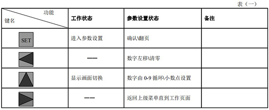 (3)標(biāo)況流量計算公式(若補償后單位為 U.0):(4)標(biāo)況流量計算公式(若補償后單位為 U.1):注:標(biāo)況指 20℃,1 標(biāo)準(zhǔn)大氣壓三、一體化液晶顯示表頭參數(shù)設(shè)置操作說明(V03Z)1、鍵盤按鍵說明2、 顯示窗字符說明注:表中 x 代表“0”或“1”;Zn:標(biāo)準(zhǔn)狀態(tài)下(20℃,1 標(biāo)準(zhǔn)大氣壓),被測氣體的壓縮系數(shù),Z:工作狀態(tài)下被測氣體的壓縮系數(shù)3、 操作說明3.1、本儀表表頭采用自導(dǎo)引式和菜單式相結(jié)合的參數(shù)設(shè)置方式,所謂自導(dǎo)引式參數(shù)設(shè)置方式就是用戶在進入菜單 00 項后,表頭中的微電腦會自動導(dǎo)引用戶去設(shè)置需要設(shè)置的參數(shù)。另外,用戶也可以通過菜單模式分別對各組參數(shù)進行設(shè)置。蒸汽測量菜單框圖如下:3.2、參數(shù)設(shè)置約定:在設(shè)置各項參數(shù)時,提示符閃動代表該項參數(shù)沒有設(shè)置完或者尚未確認,可以通過按SET 鍵來確認或者按→鍵退出;提示符不閃動代表該項參數(shù)已設(shè)置完并確認,此時可以通過按 SET 鍵翻頁或者按→鍵退出。進入?yún)?shù)設(shè)置時,需要輸入密碼(6 位)并確認進入,為了防止誤進入?yún)?shù)設(shè)置菜單,保證儀表正常工作,在設(shè)置密碼時,使用↑鍵調(diào)數(shù)時不能循環(huán)調(diào)數(shù),只能單次調(diào)數(shù),只有密碼輸入正確進入各項參數(shù)設(shè)置菜單后才可以對各位循環(huán)連續(xù)調(diào)整數(shù)據(jù)。3.3、儀表參數(shù)設(shè)置舉例:儀表出廠前各項參數(shù)已設(shè)置好,用戶無需設(shè)置。如果用戶需要設(shè)置某項參數(shù),請參照以下步驟,例如修改刻度流量值 QT:在工作狀態(tài)下,按 SET 鍵,顯示屏顯示 P,數(shù)字位為全零,8 秒鐘若無操作,自動返回工作狀態(tài)。輸入密碼 :按數(shù)字↑鍵和左移←鍵,輸入密碼數(shù) xxxxx(出廠時默認密碼為 000123),↑鍵調(diào)各位數(shù)字 0-9,每按 ←鍵一次數(shù)字向右循環(huán)一位,可通過多次按←鍵對整段數(shù)字清零,按→鍵可以返回工作狀態(tài)。菜單選擇項:按 SET 鍵確認,顯示屏顯示如右圖所示,末行“00”閃動調(diào)整該項值選擇不同參數(shù)設(shè)置菜單。該例直接按 SET 鍵進入菜單 00 項設(shè)置刻度流量:QT 閃動,*一步:*先進行小數(shù)點調(diào)整,可以通過←鍵對參數(shù)快速清零或者通過↑鍵進行小數(shù)點調(diào)整,調(diào)整完畢,按 SET 鍵確認(QT 仍閃動);*二步:數(shù)值調(diào)整,可以通過↑鍵對每位數(shù)字進行調(diào)整,按 ←鍵一次數(shù)字向右移動一位,調(diào)整完畢,按 SET 鍵確認,QT 停止閃動,該項參數(shù)設(shè)置完畢,可進行下一項參數(shù)設(shè)置或者退出另外,單位設(shè)置 U.X 和補償方式設(shè)置 dX 通過↑鍵調(diào)整修改。3.4、校驗項說明: 儀表出廠前,溫度和壓力通道已校驗設(shè)置好,無需用戶重新校驗。校驗通道有密碼保護,廠家不對外開放,如果需要重新校驗溫度或者壓力通道,請專業(yè)人員與廠家技術(shù)人員聯(lián)系。4、計算公式說明4.1、蒸汽測量計算公式(1)渦街流量儀表工況體積流量計算公式:(2)密度 d,單位 Kg/m3(3)質(zhì)量流量計算公式,單位 Kg/h:(4)質(zhì)量流量計算公式,單位 t/h:4.2、氣體測量計算公式----標(biāo)況指 20℃,1 標(biāo)準(zhǔn)大氣壓(1)渦街流量儀表工況體積流量計算公式:(2)對比壓縮系數(shù) d(Zn/Z),單位 1(3)標(biāo)況流量計算公式,單位 Nm3/h:P1—工況絕壓,PN—標(biāo)況絕壓(Mpa),T1—工況熱力學(xué)溫度,TN—標(biāo)況熱力學(xué)溫度(K)