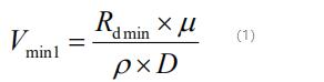 式中:Vmin1--基于雷諾數(shù)限制的工況流速下限,m/s;Rd min--為保證標(biāo)稱準(zhǔn)確度,所需非常小雷諾數(shù);μ--流體在工況下的動(dòng)力黏度,cP 或 mPa·s;ρ--流體工況密度,kg/m3;D--管道內(nèi)徑,mm。對(duì)于黏度高于1cP的液體流量檢測或小于DN40的小口徑規(guī)格的選用,應(yīng)不可省略雷諾數(shù)下限的核算。