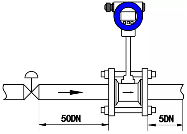 2、調(diào)節(jié)閥盡可能不安裝在渦街流量?jī)x表的上游,而應(yīng)安裝在壓縮空氣流量計(jì)的下游10D處。