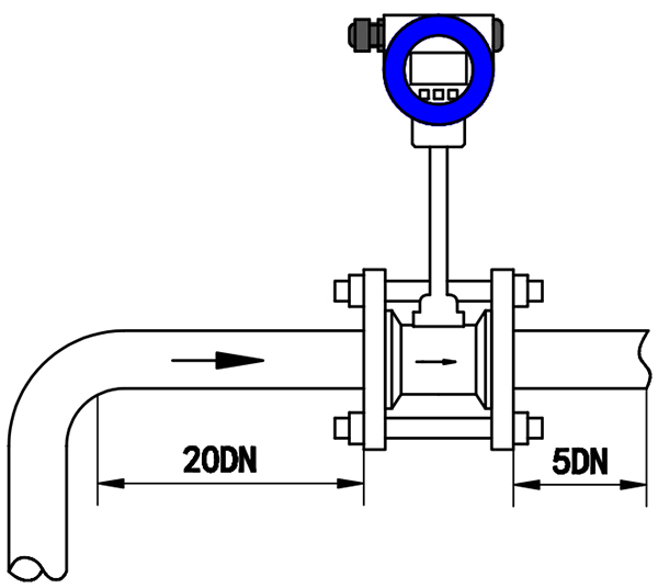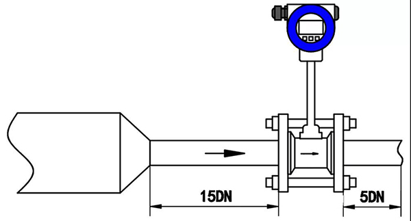2、調節(jié)閥盡可能不安裝在液體渦街流量計的上游,而應安裝在液體渦街流量計的下游10D處。
